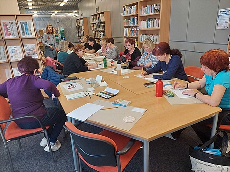 Kurz malby Lektorka malby Mgr. Veronika Chytílková ve svém kurzu studentkám ukázala, jak z pár barev namíchat širokou škálu odstínů, naučila je základní tahy štětcem, malovaly převážně akvarelem, naučily se malovat od detailů květin, hmyzu až po krajinu a spoustu dalších nádherných věcí. Z výtvorů studentek byla po skončení kurzu uspořádána výstava v čítárně kulturního domu.