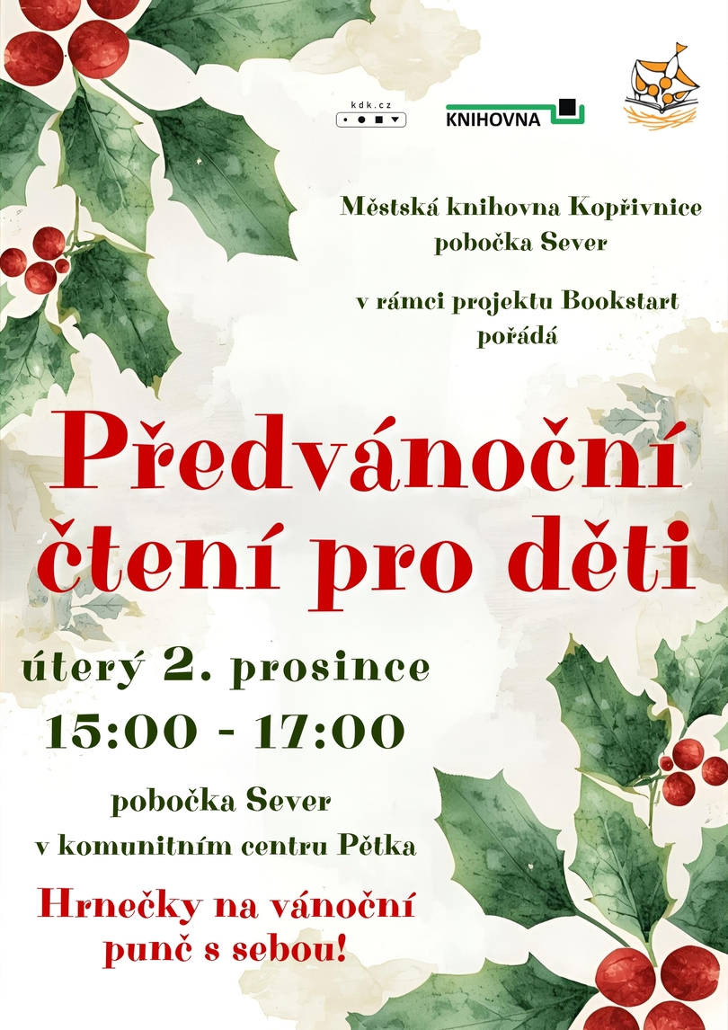 Pobočka Sever zve v rámci projektu Bookstart všechny děti a rodiče na předvánoční čtení. Hrnečky na vánoční punč s sebou!