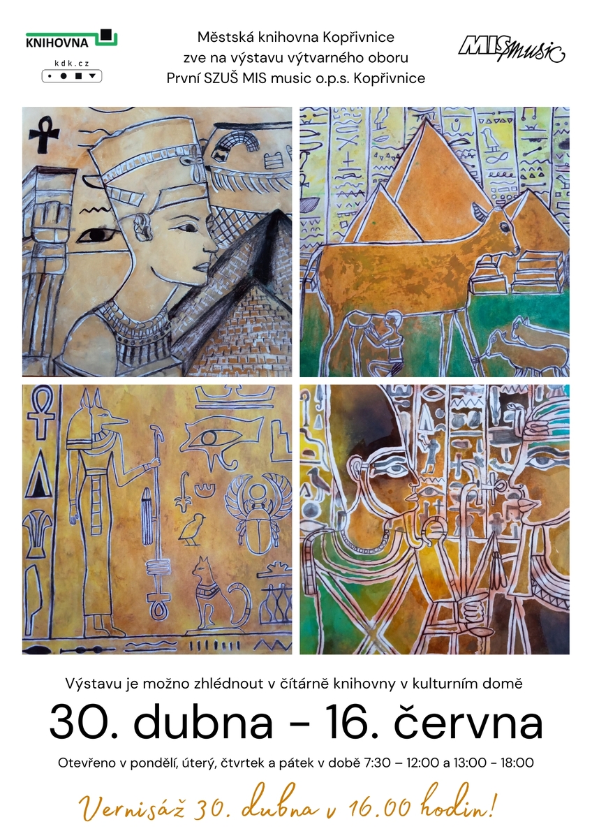Městská knihovna Kopřivnice zve na výstavu výtvarného oboru První SZUŠ MIS music o.p.s. Kopřivnice.