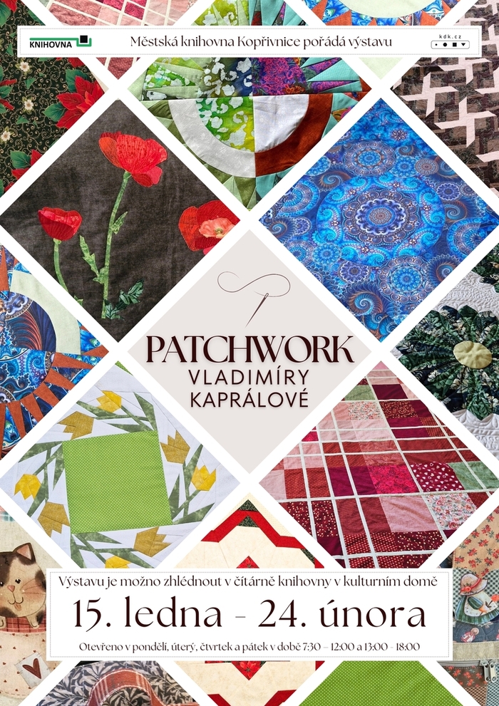 Výstava představuje krásné patchworkové práce Vladimíry Kaprálové, které potěší všechny, kdo mají rádi textilní umění, barvy a textury. Patchwork je technika šití dekorativních kusů látek do jedinečných vzorů a tvarů, které přinášejí inspiraci i klidný estetický zážitek.