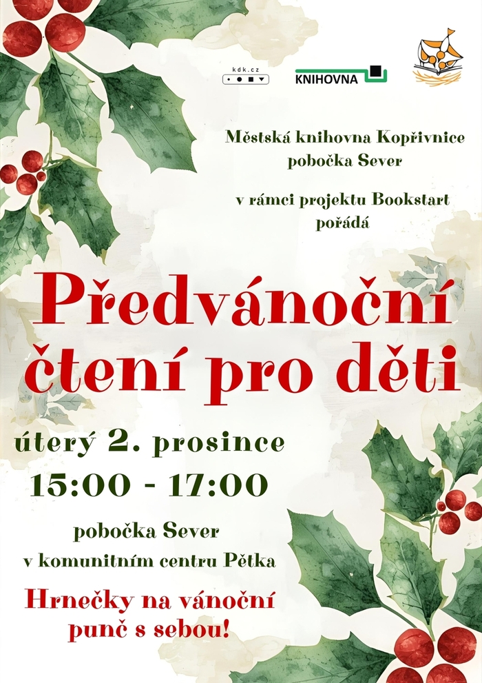 Přijďte se s dětmi zaposlouchat do vánočních příběhů a naladit se na blížící se Vánoce. Hrneček na vánoční punč s sebou!