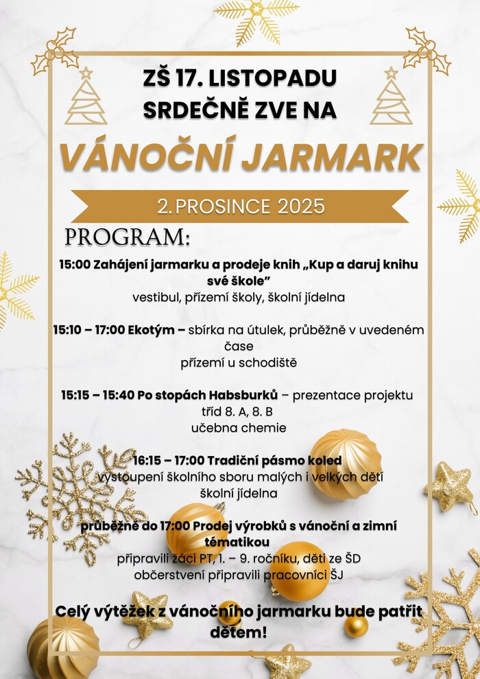 Úterý 2. 12. | 15.00 – 17.00 | Základní a Mateřská škola 17. listopadu