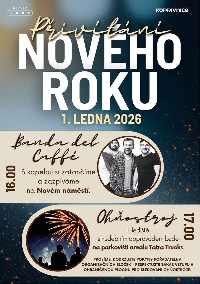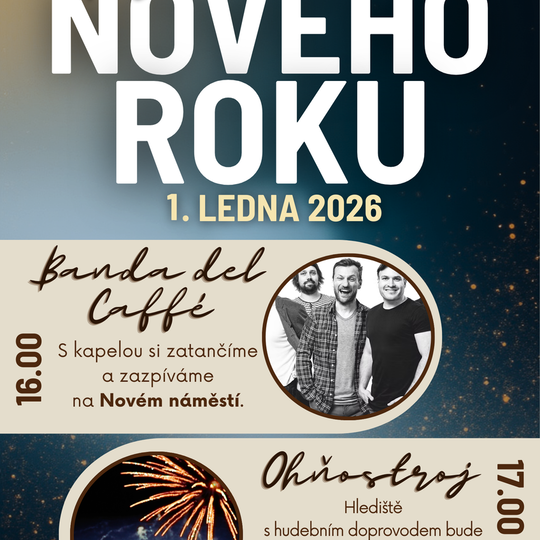 Srdečně vás zveme na slavnostní odpolední přivítání nového roku, kde nebude chybět skvělá hudba s kapelou Banda del Caffe ani tradiční ohňostroj.