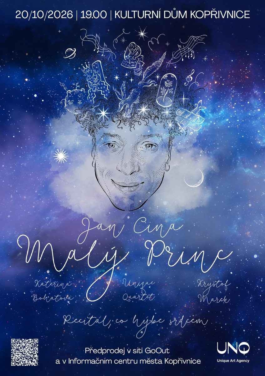 Naše ztvárnění není klasickým vyprávěním příběhu Malého prince. Je to originální spojení hudby a slova, které divákovi umožní oddat se své fantazii a pohladí ho na duši. V recitálu exceluje známý herec Jan Cina, který nás provede kouzelným světem, kde vše, co je důležité, je očím neviditelné. Spolu se zpěvačkou Vendulou Příhodovou / Kateřinou Bohatovou představí původní písně od Kryštofa Marka za doprovodu smyčcového kvarteta Unique Quartet a piana. Představení je vhodné pro diváky všech věkových kategorií.